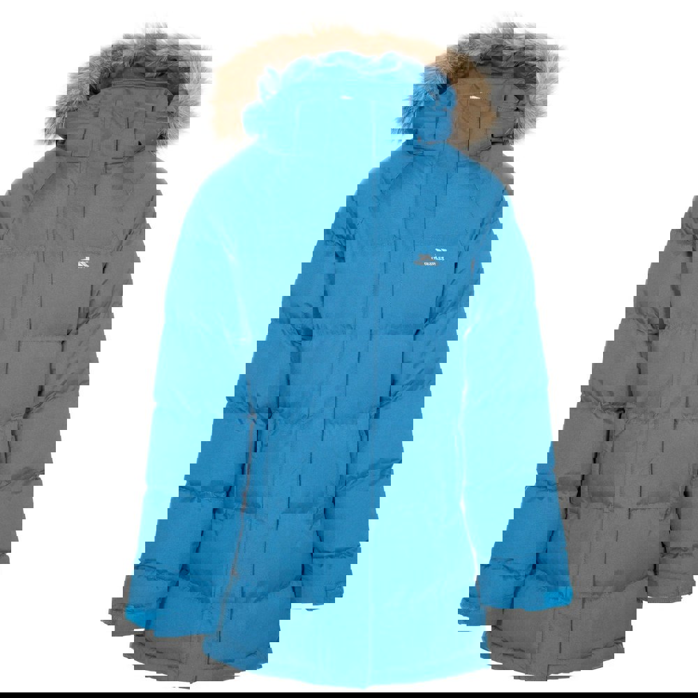 This padded jacket is made with a 100% polyester outer, lining and filling. The fabric mix includes faux fur, fleece and woven panels, finished with a quilted design. Coldheat technology is included, alongside a storm flap for added coverage.