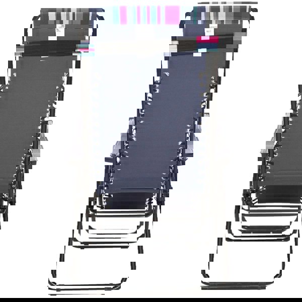 Finished in a tropical stripe design, this reclining garden chair also features a removable head rest, allowing you to tailor the support to your preference. The steel frame provides a sturdy structure, and the chair can be locked in position once you have found the angle you want.