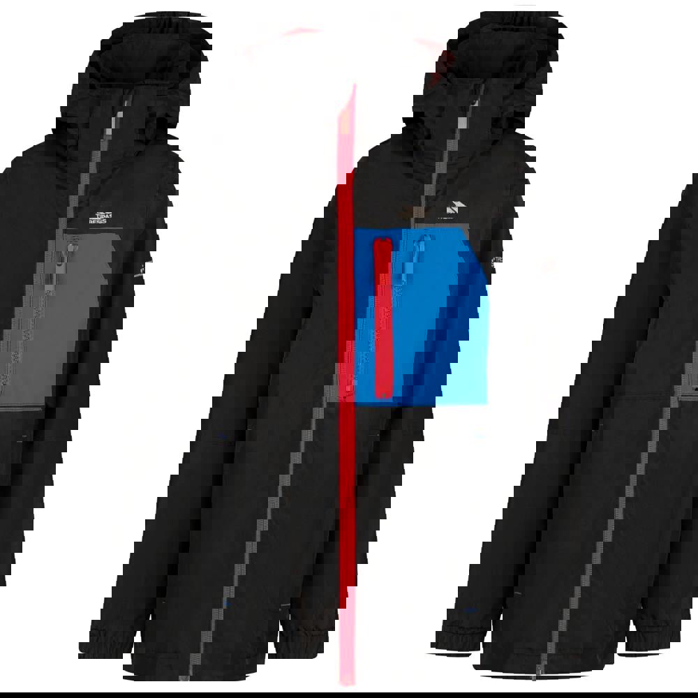 This kids’ Aleric jacket from Trespass comes in navy with a logo design and a hooded neckline. It has long sleeves with elasticated cuffs and a sew-on hood. A full-length contrast zip fastening runs through the front.