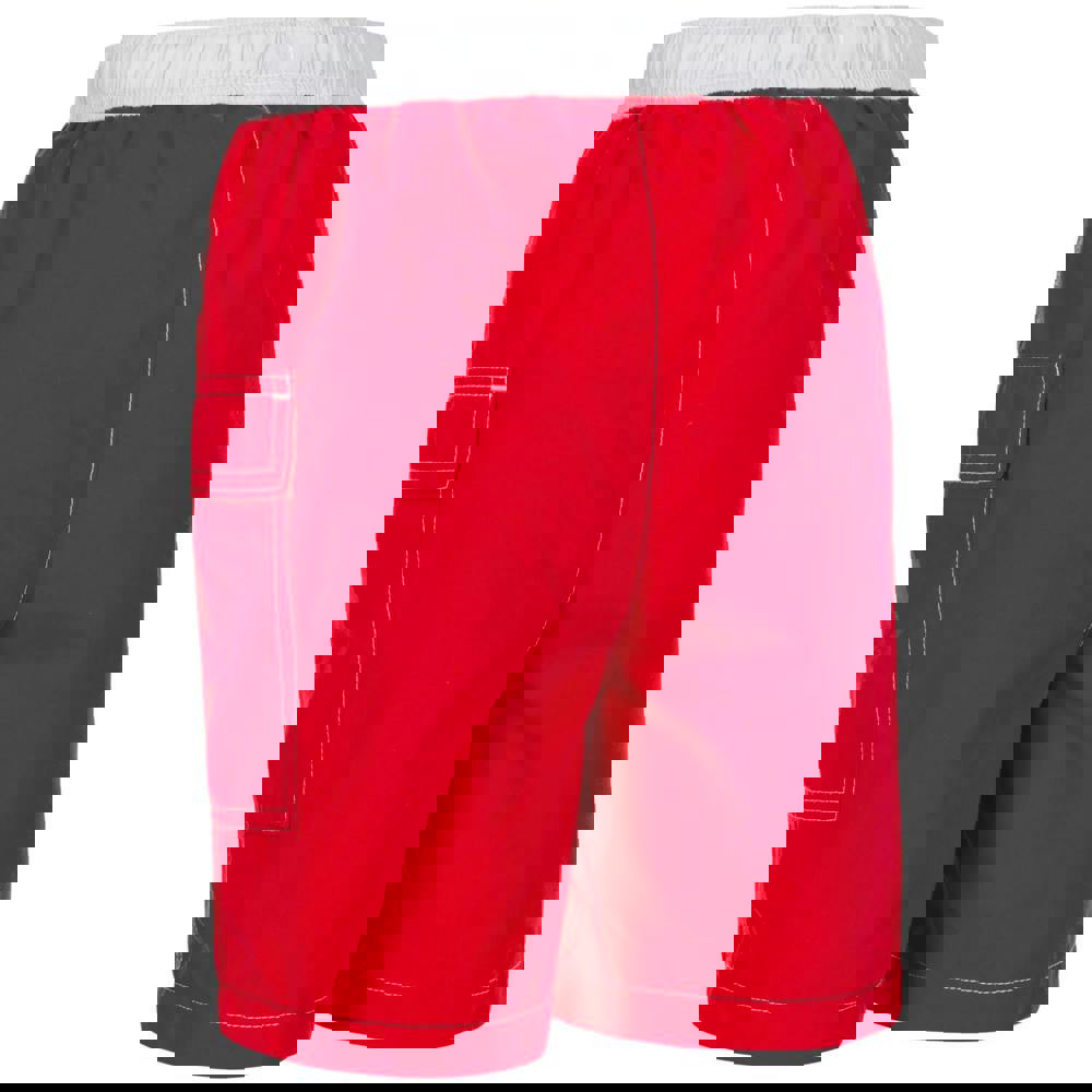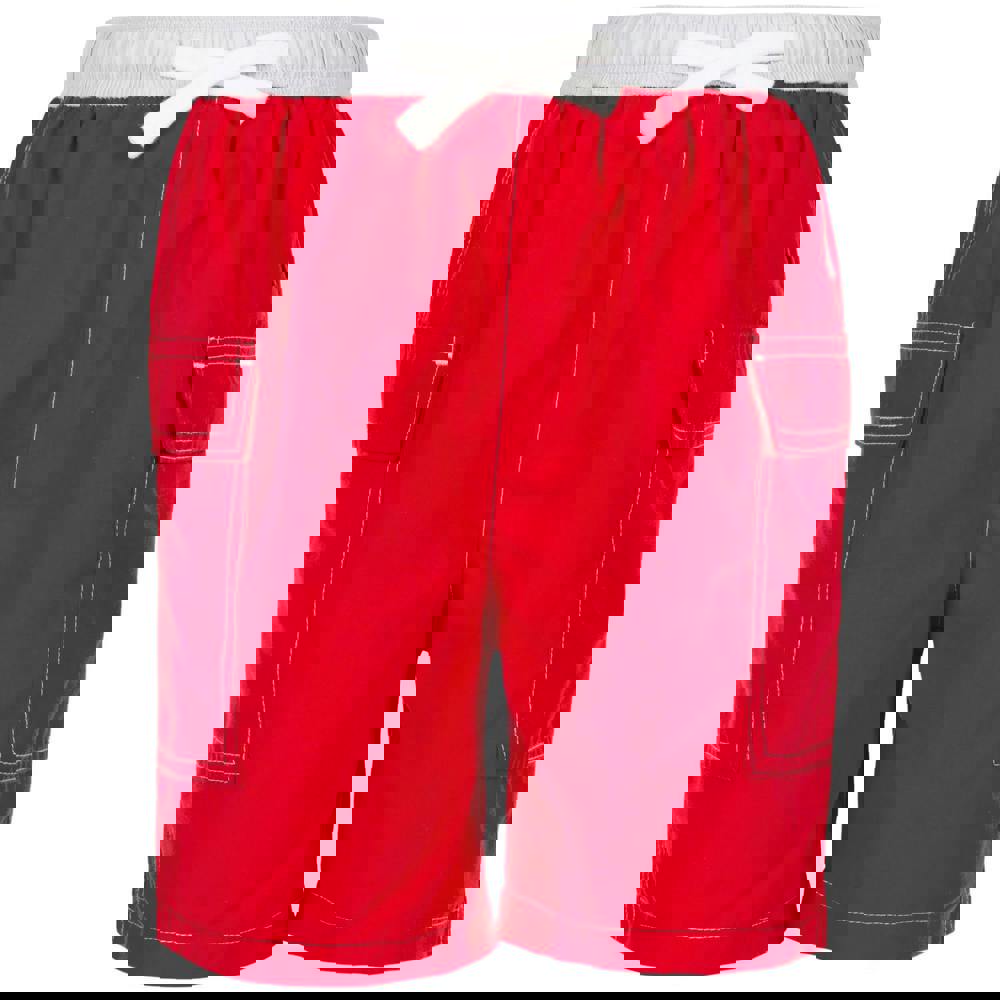 Trespass Kids Depths swim shorts come in red with a contrast design. The woven microfibre fabric is made from 100% polyester. An elasticated waist and drawcord fastening provide an adjustable fit.