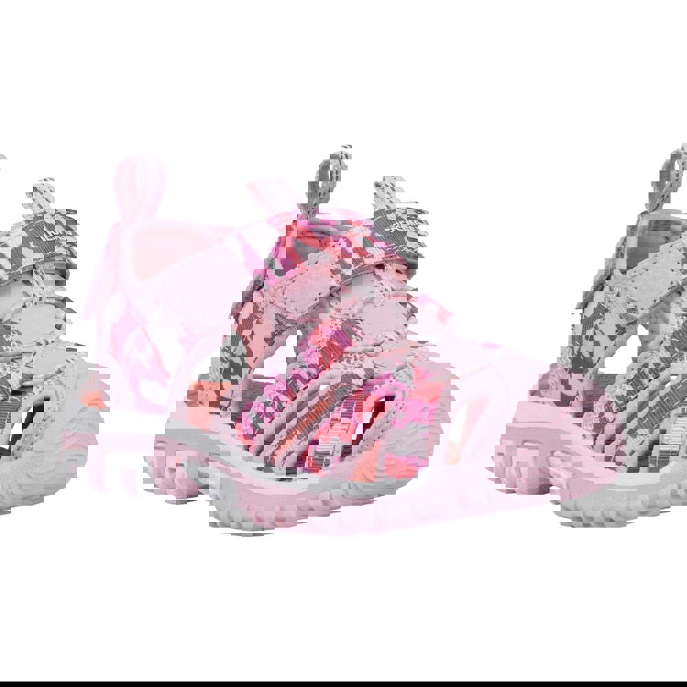Trespass Kids Jaime Sandals in pink combine PU (polyurethane) and textile in the upper, with a textile lining. The insole uses cushioned EVA, paired with a durable TPR outsole. A closed-toe shape and flat profile keep the look clean and practical.