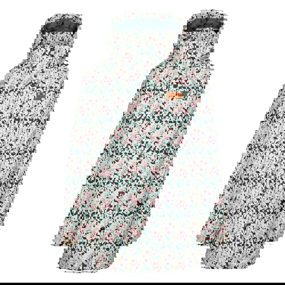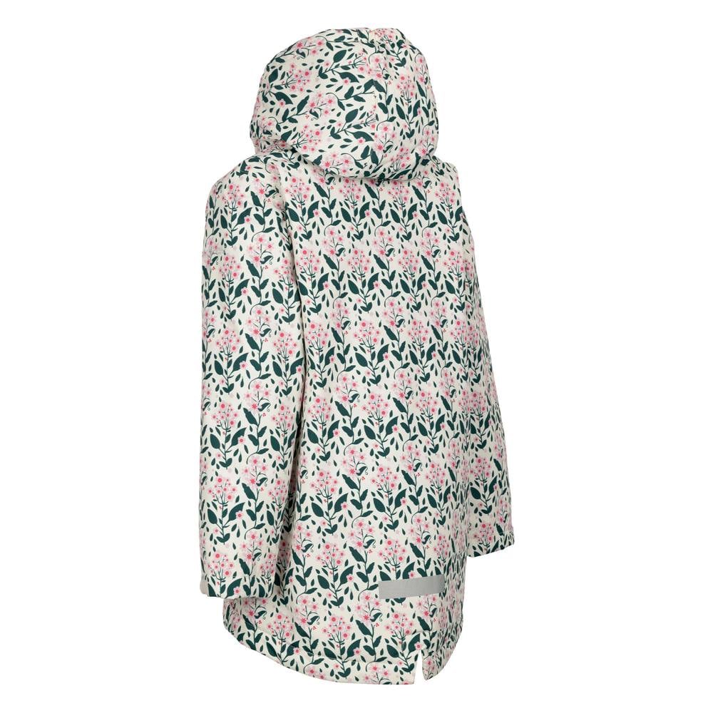 This kids’ Rainstone Leaves jacket from Trespass comes in cream with an all-over print combining flowers, leaves and a logo. It has a hooded neckline with a sew-on hood and long sleeves, finished with touch fastening tabs at the cuffs. A reflective tape detail sits at the back.