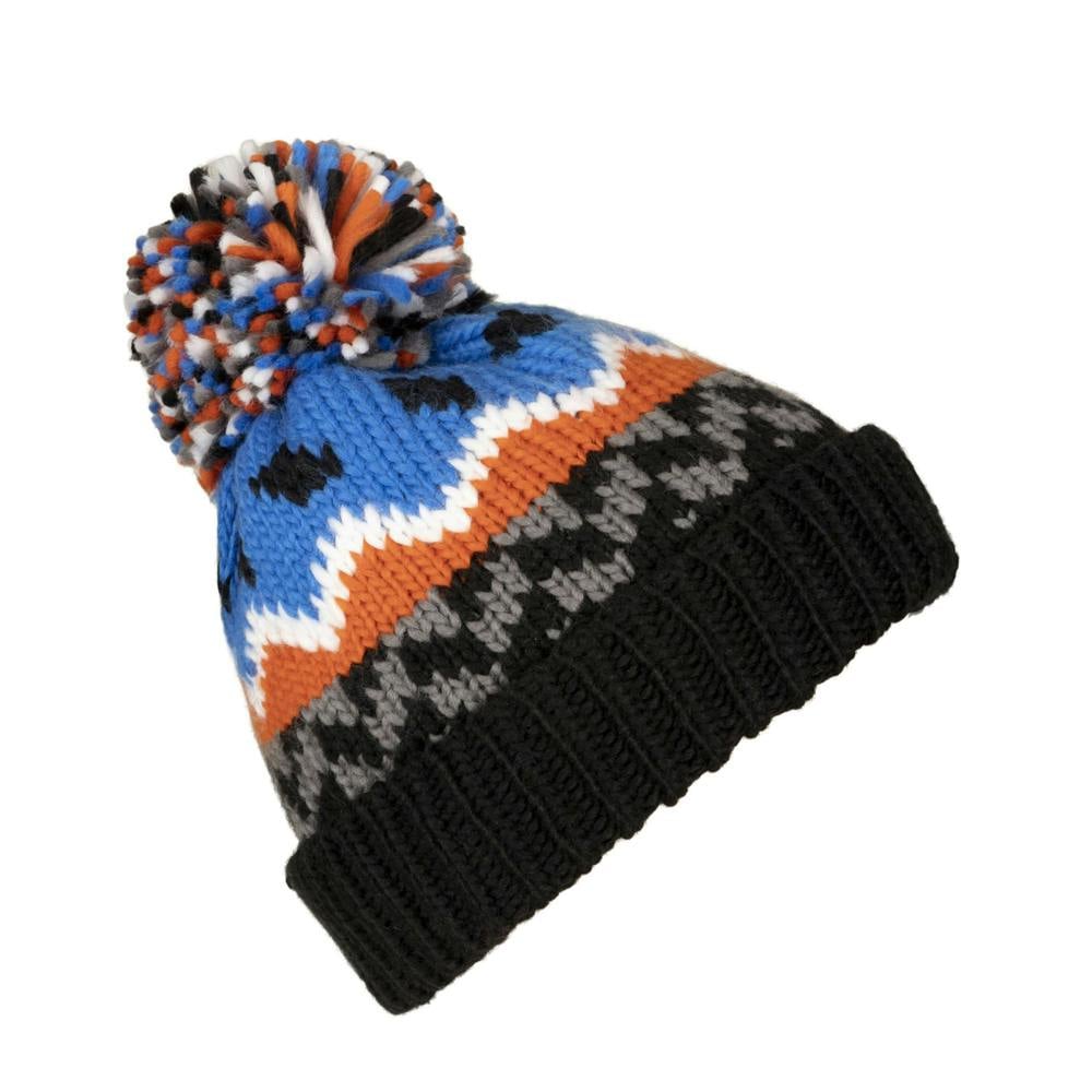 This kids’ hat from Trespass comes in blue with a chunky knit outer and a fleece lining. The design includes a tonal logo and a turned up cuff, finished with a bobble and a leatherette badge.