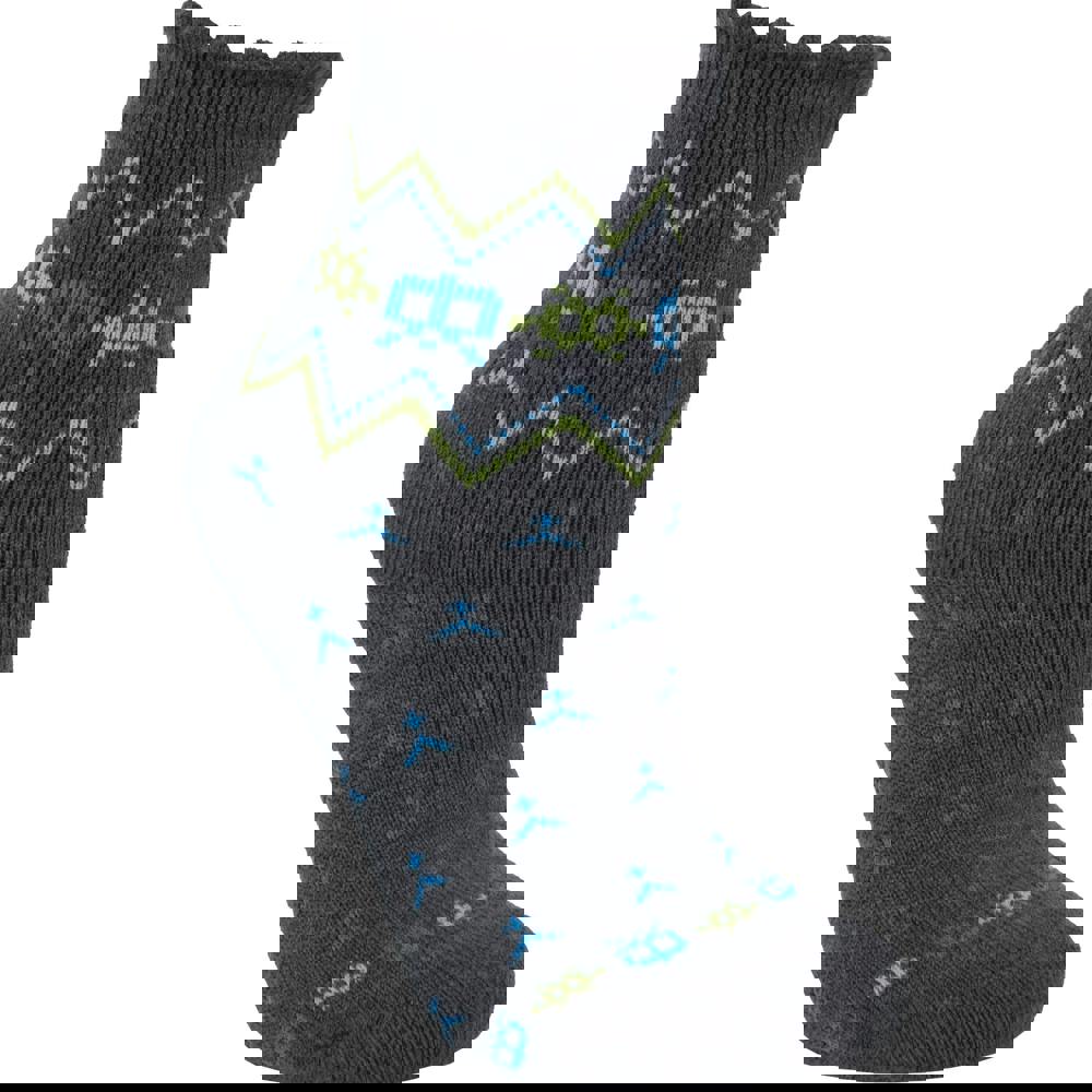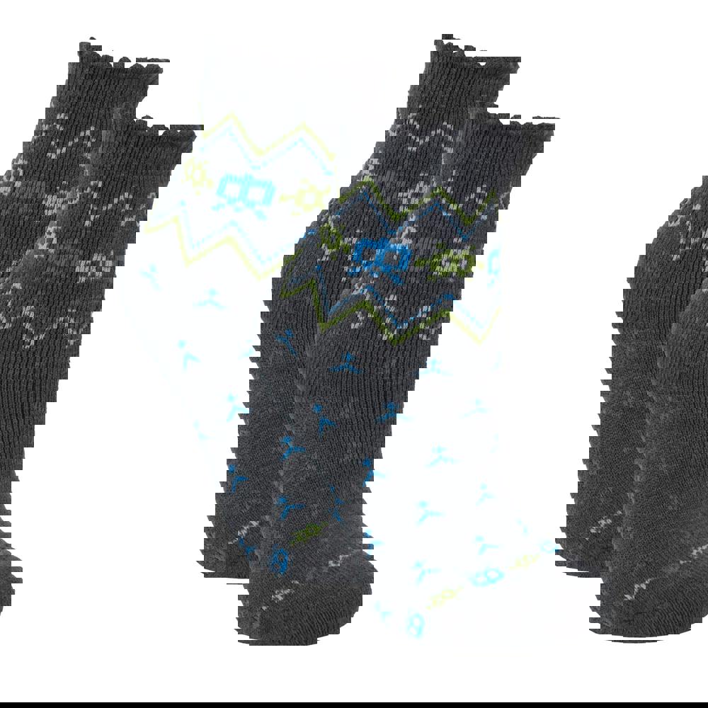 Trespass Kids Twitcher patterned socks in graphite. The fabric blend combines acrylic, nylon, spandex and elastic for a flexible finish, with an all-over pattern for a distinctive look.