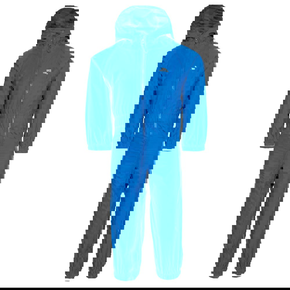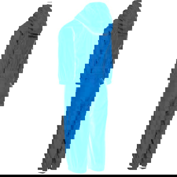 This unisex padded rain suit comes in cobalt and includes a grown on hood for added coverage. A full body length front zip runs through the front and is finished with reflective piping. Elasticated cuffs and ankles help secure the fit, while an elasticated side waist adds shaping.