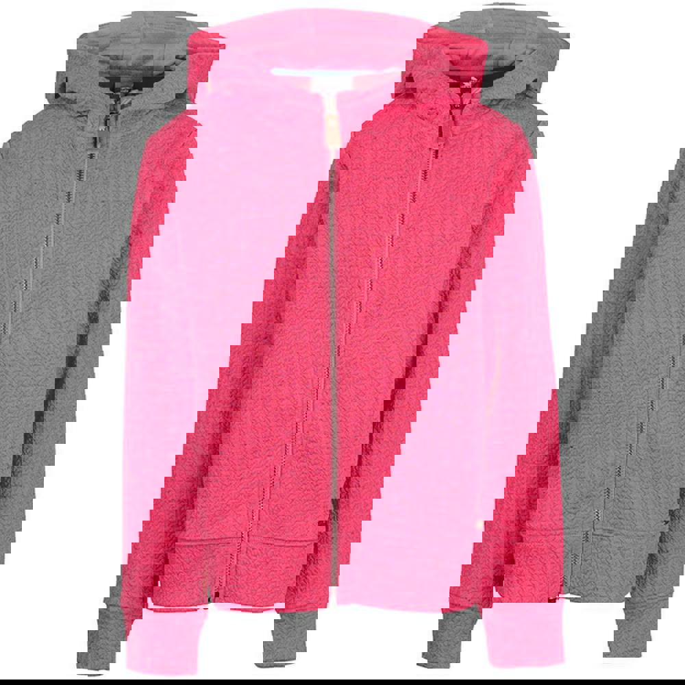 Soft-touch and practical, the Trespass Kids Winnie Marl Hoodie is a pale pink, long-sleeved layer with a plain finish and jacquard marl texture. It fastens with a full zip and includes two side pockets for everyday essentials. A grown-on hood with jersey lining completes the hooded neckline, keeping the look neat and comfortable for day-to-day wear.