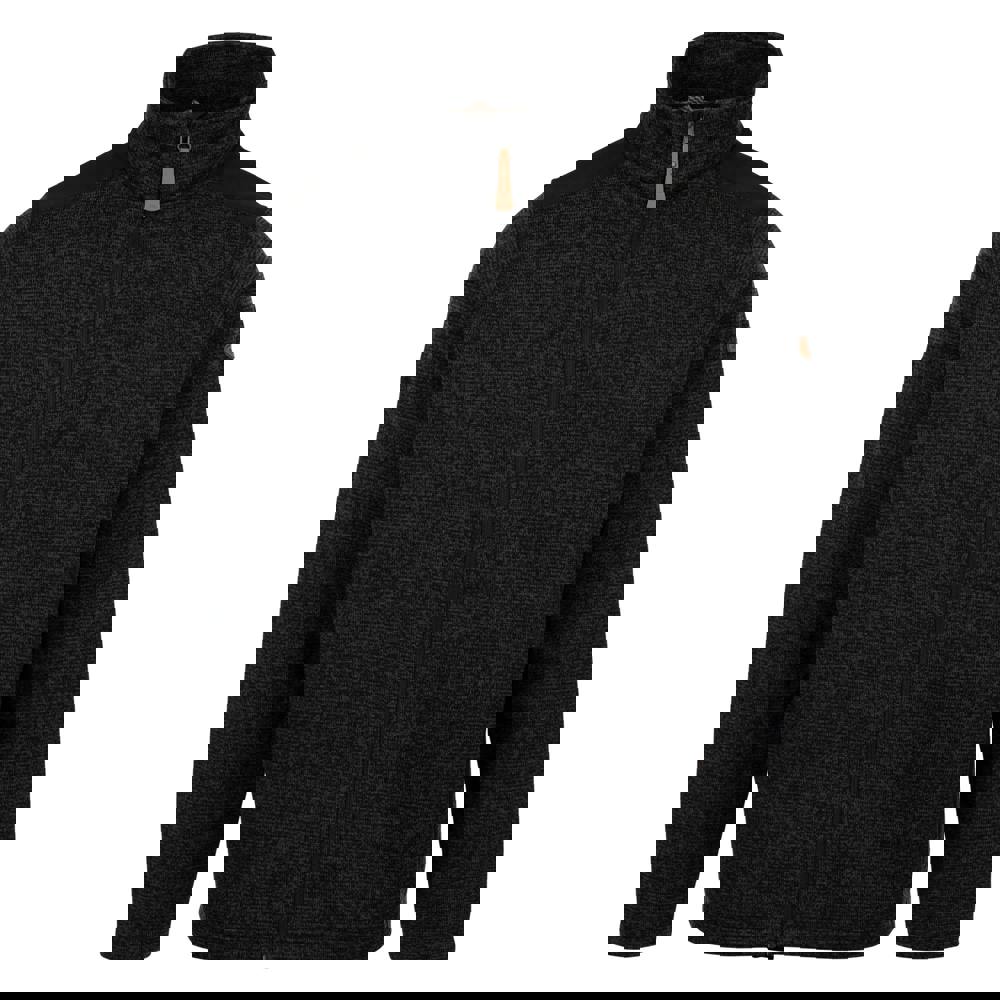 Cut from 100% polyester, this men’s fleece jacket is made in a knitted marl fabric with a plain finish and contrast panelling. The high-neck shape and long sleeves create a clean, practical profile for everyday layering.