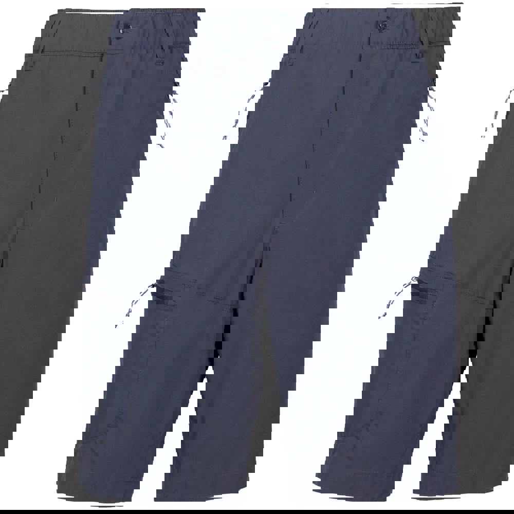 A flat waist is paired with inner waistband adjusters and belt loops for a secure, adjustable feel. Storage is organised through a cargo layout, combining side and back pockets, with zip detailing and a fabric zip pull. A button fastening and zip fly complete the front closure.