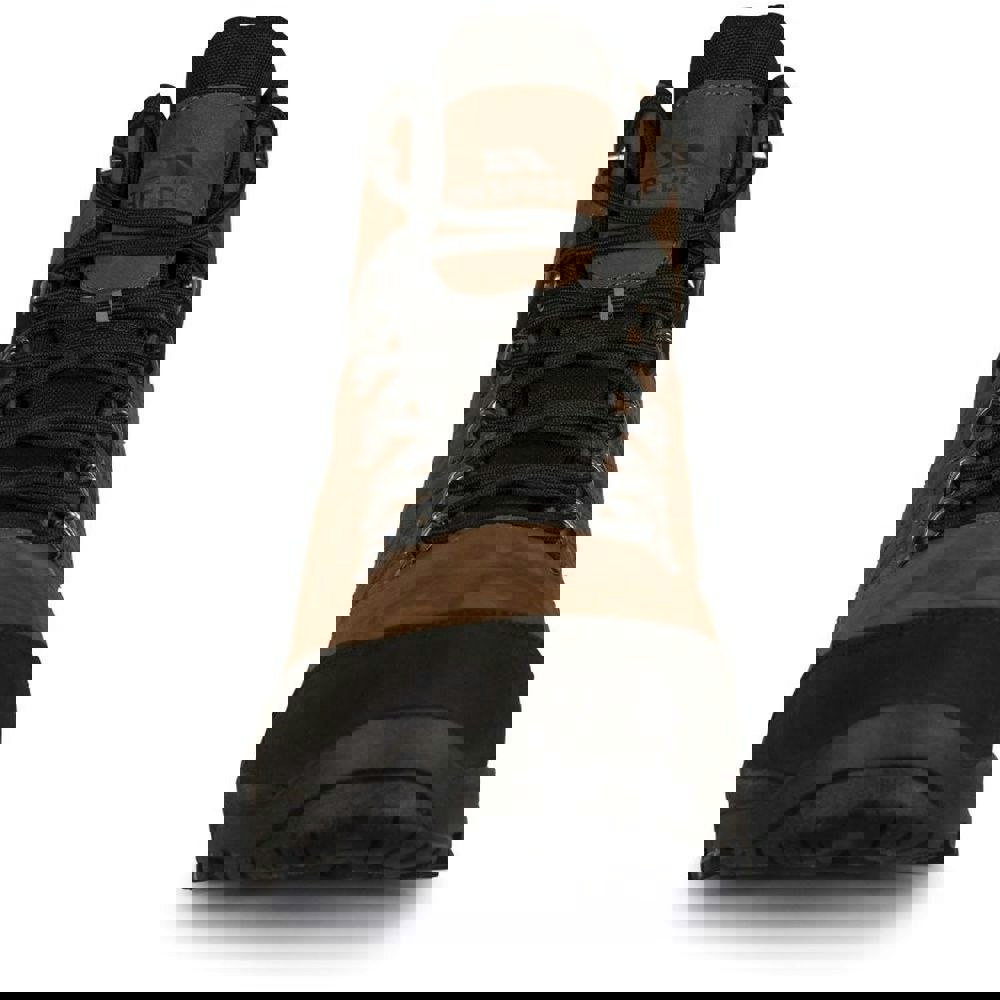 These men’s Corrie hiking boots are built with a leather upper and a textile lining, finished in light brown with a logo detail. The ankle cut and round toe shape create a classic hiking profile, while the lace-up fastening runs through six eyelets for a secure fit.