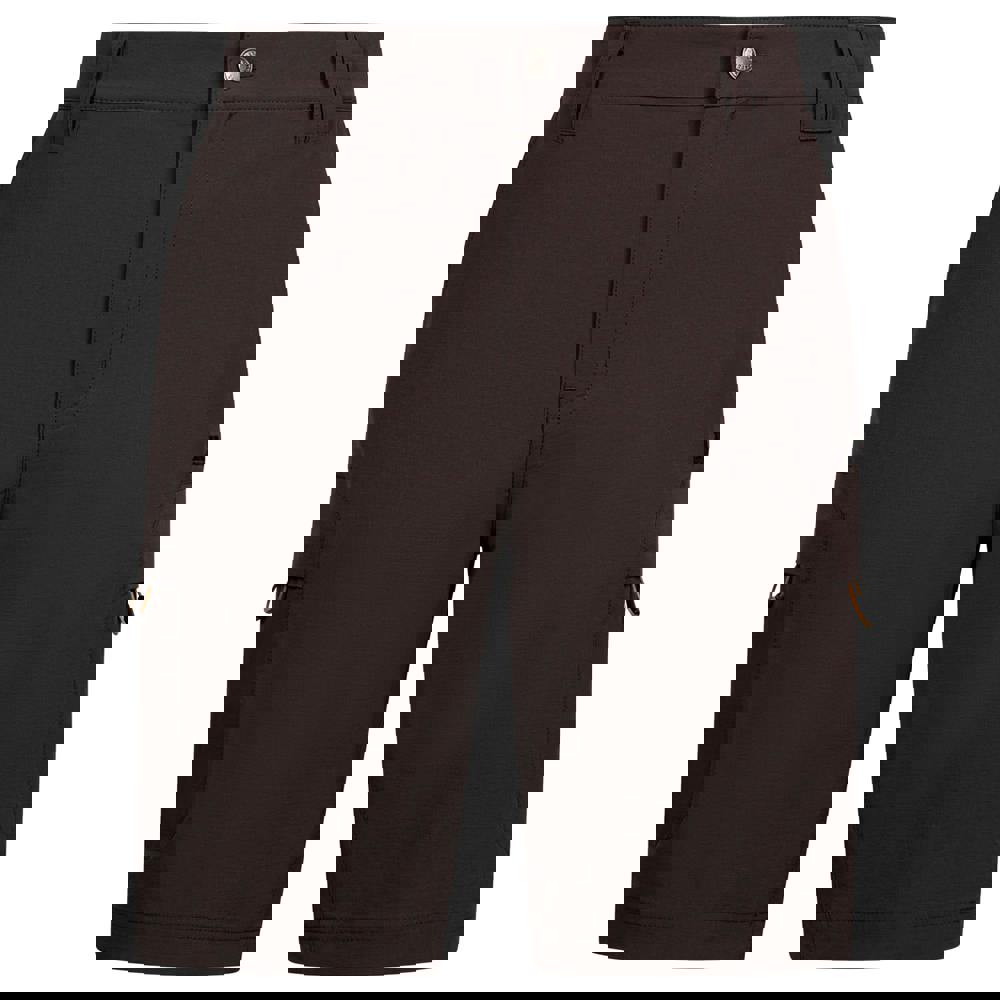 Trespass Dalham shorts in peat are made from a ripstop stretch fabric with contrast detailing and a logo. The fabric blend combines 85% polyamide and 15% elastane, with a DWR finish and moisture-repellent properties. A flat waist and inner waistband adjusters keep the waistband secure, while belt loops allow use with a belt.