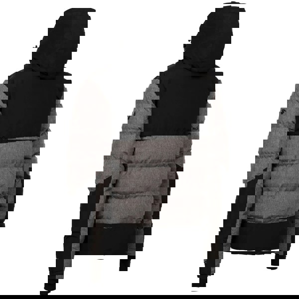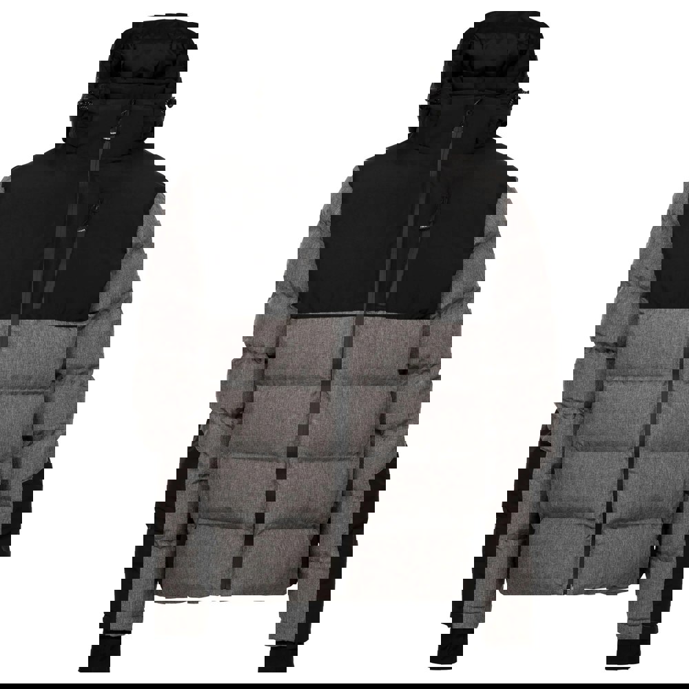 This padded men’s jacket is made from 100% polyester with a TPU membrane shell. It has a hooded neckline with an adjustable drawcord hood that can be zipped off, offering flexible wear for everyday outerwear. The design includes contrast panels and a logo detail, finished in a grey marl look.