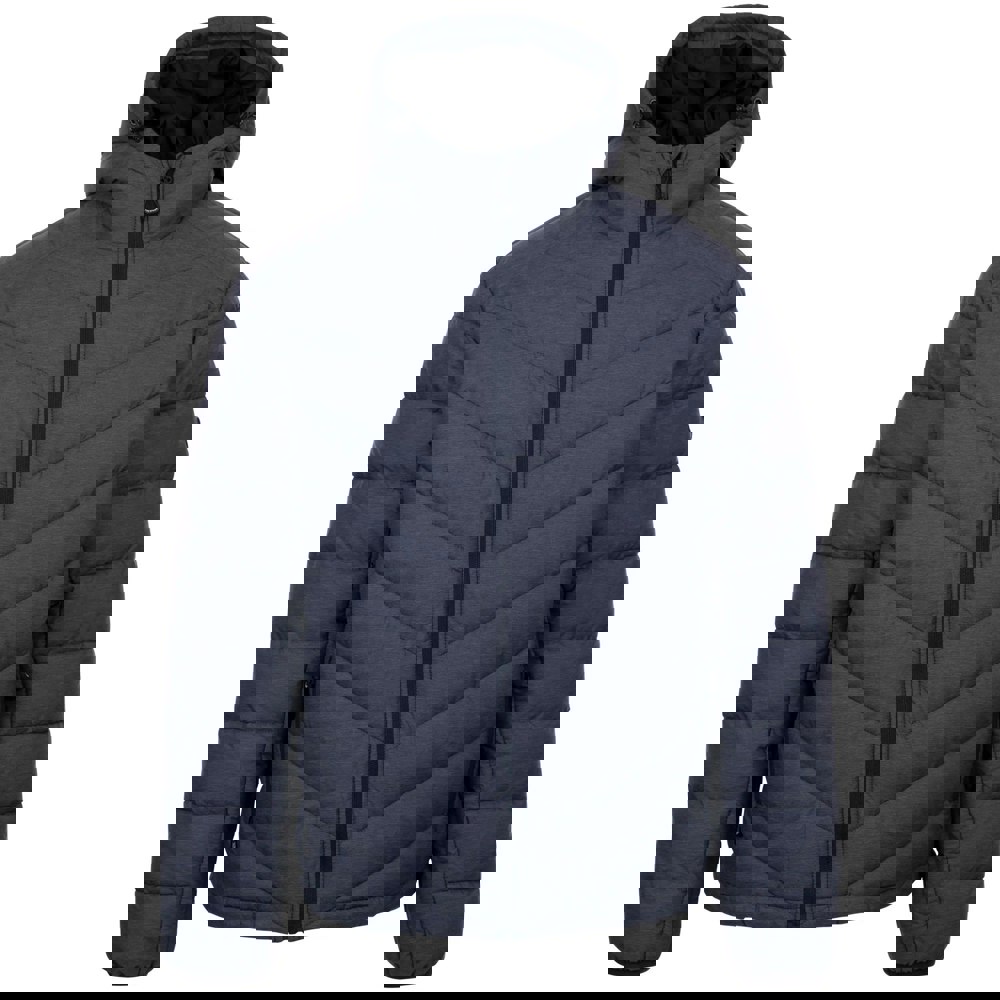 Built for everyday outerwear, this padded jacket comes in a navy marl finish with a plain design. It has a hooded neckline and long sleeves for classic coverage, finished with a full zip fastening for straightforward wear.
