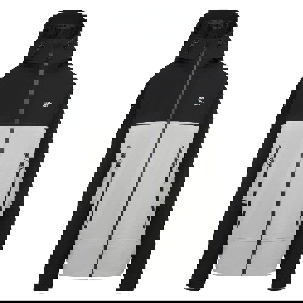 The Trespass Ewen waterproof jacket is a hooded, long-sleeved style with contrast detailing and logo branding. It fastens through the front with a full zip and includes a sewn-on hood with a toggle adjuster for a secure finish.