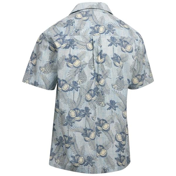This casual shirt is made from 100% cotton in a woven fabric. It comes in Blue Haze with an all-over printed design, combining coconut tree, pineapple and logo motifs for a bold finish.