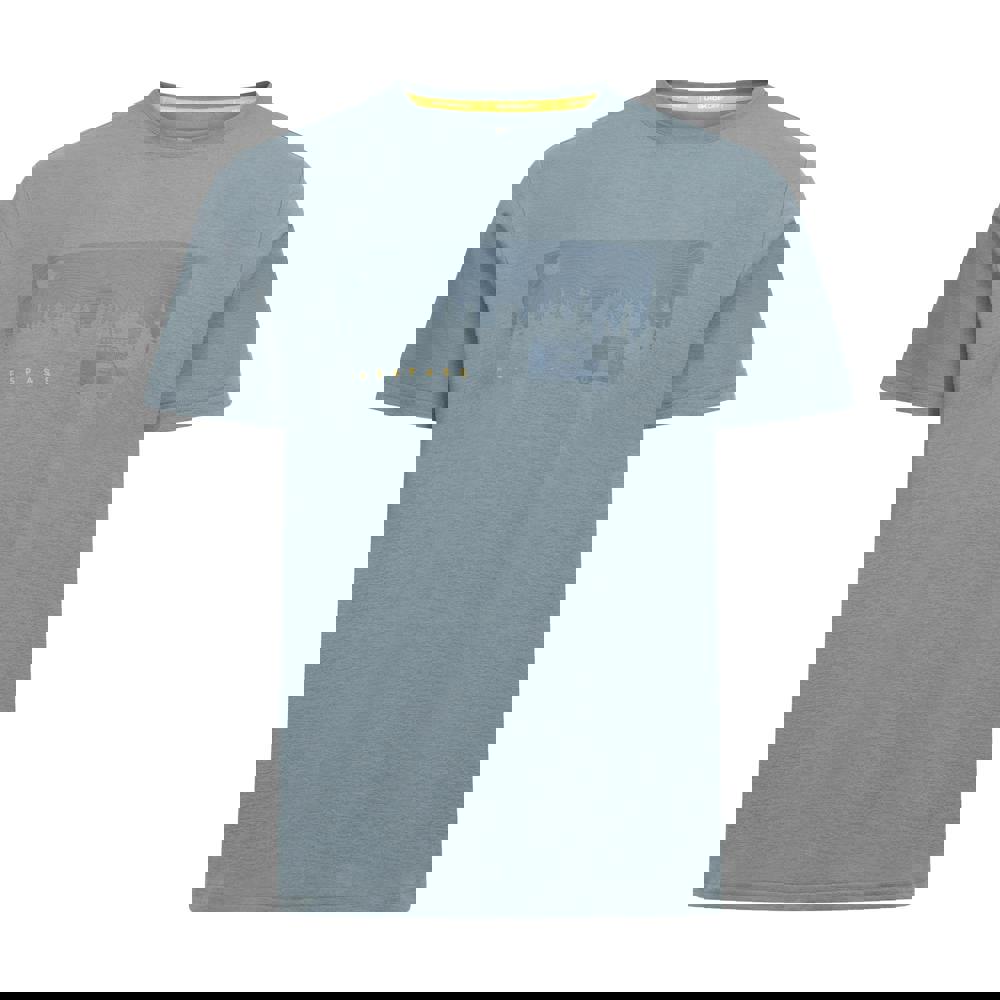 This short-sleeved T-shirt is made from 100% polyester knitted fabric with a printed design. It is finished with a crew neckline and side seams for a clean, structured look that suits casual wear.