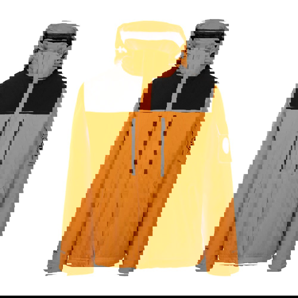 Water-repellent and waterproof fabric technology supports wear in wet conditions. Storage is organised across multiple pockets, including chest and lower pockets, plus internal and sleeve options. The front closes with a full zip and adjustable fastening details.