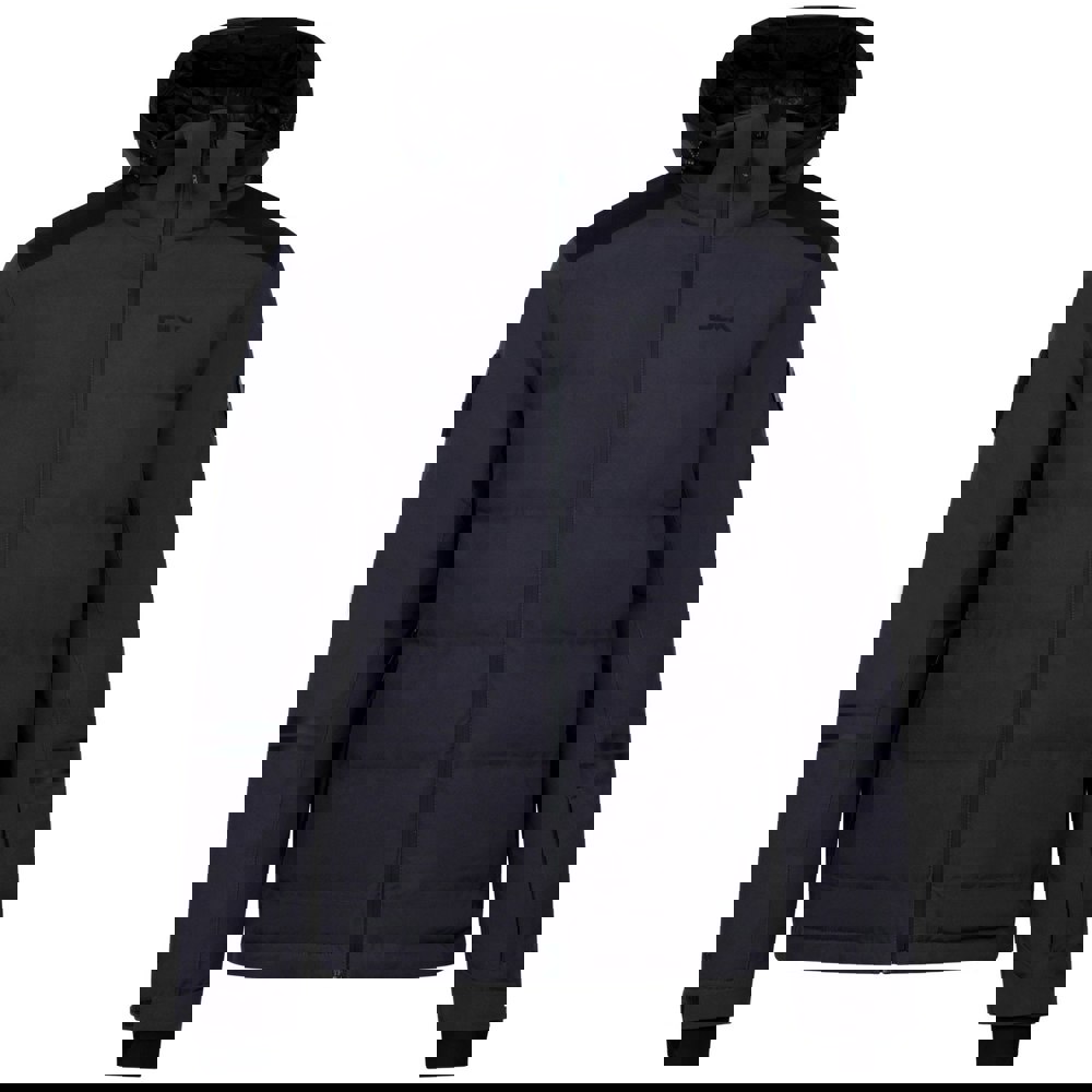 Built for time on the slopes, this padded ski jacket comes in a plain dark grey finish with a standing collar and long sleeves. It is made from 100% polyester and uses a TPU membrane with breathable, waterproof and windproof fabric technology. Taped seams and a water-repellent full zip help keep the weather out, while underarm vents add practical ventilation.