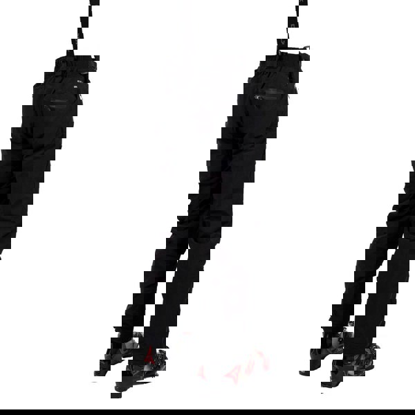 Practical details include an adjustable waistline and braces that can be adjusted or detached. Storage is arranged across two side pockets, one thigh pocket and one back pocket, with zip closures. Articulated knees, ventilation panels, ankle gaiters and kick panels complete the construction, alongside a zip fastening and a double button closure. The lining combines polyamide, polyester and tricot.