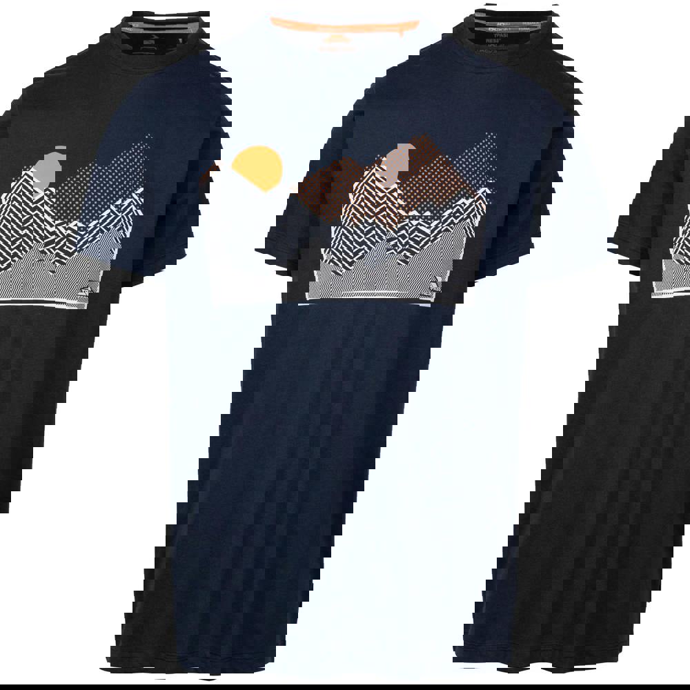 This short-sleeved T-shirt comes in navy with a printed finish and stripe detail. The design combines dotted and logo elements, finished with a round neckline for a clean, casual look. Made from a cotton and polyester blend, it is specified at 180gsm.