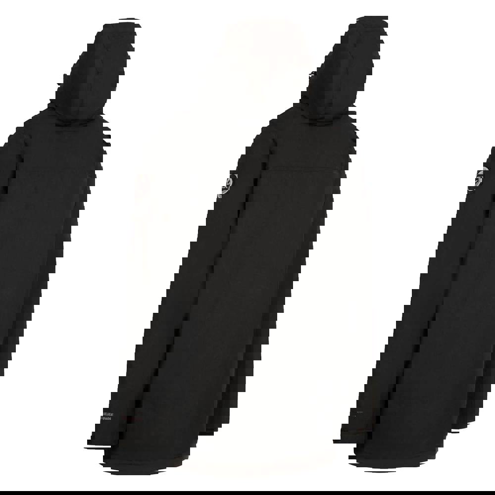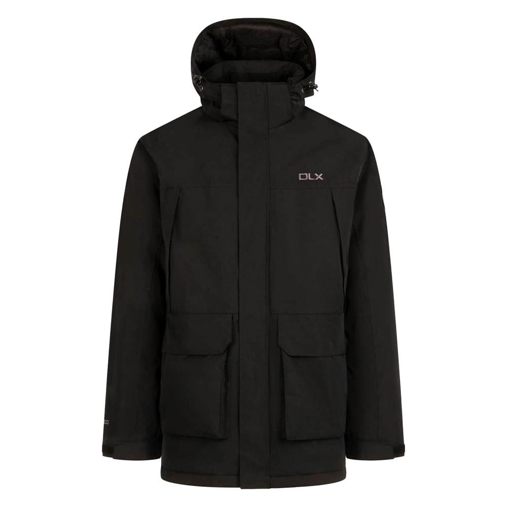 The Mullan II DLX jacket from Trespass is a long, hooded style with a plain finish and long sleeves. The outer is made from 85% polyester and 15% cotton with a PU-coated shell, while the lining is 100% polyamide. It is filled with 90% down and 10% feather.