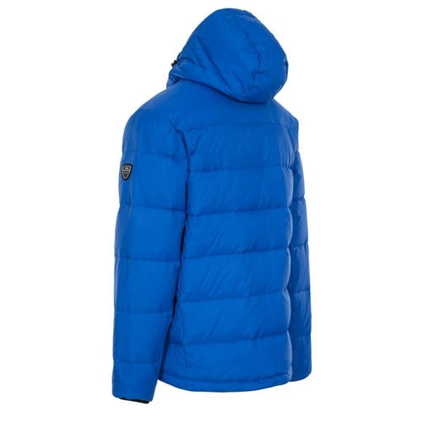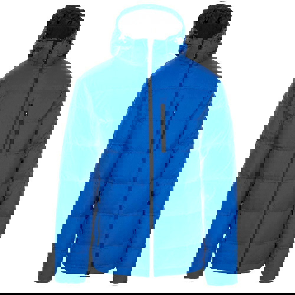 This men’s down jacket is made with a 100% polyamide shell with PU coating, a 100% polyester lining, and a filling of 50% down and 50% feather. It includes an adjustable hood that zips off for flexible wear, along with knitted inner cuffs and a hem drawcord adjuster for a secure finish.
