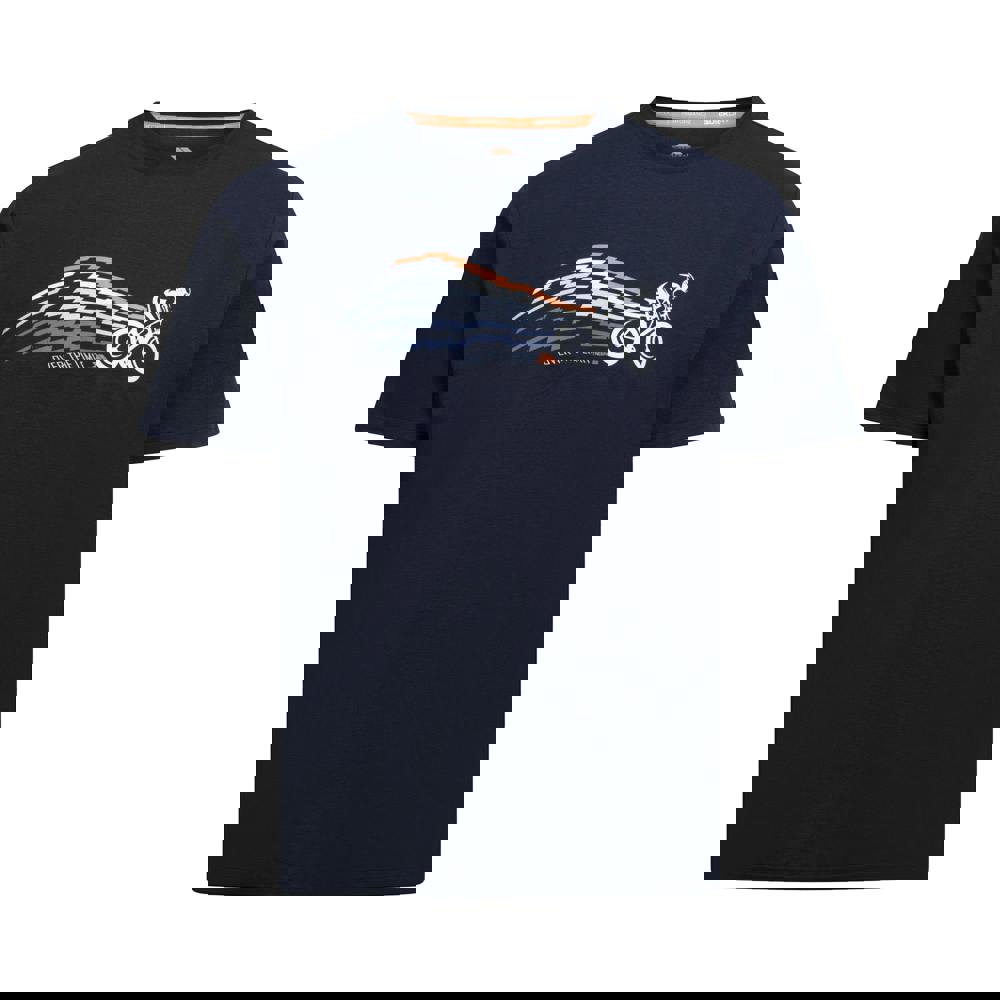 This men’s Otheo T-shirt from Trespass comes in navy with a printed design and a classic crew neckline. Made from 100% polyester with a knitted fabric construction, it is finished with short sleeves for a clean, casual profile.