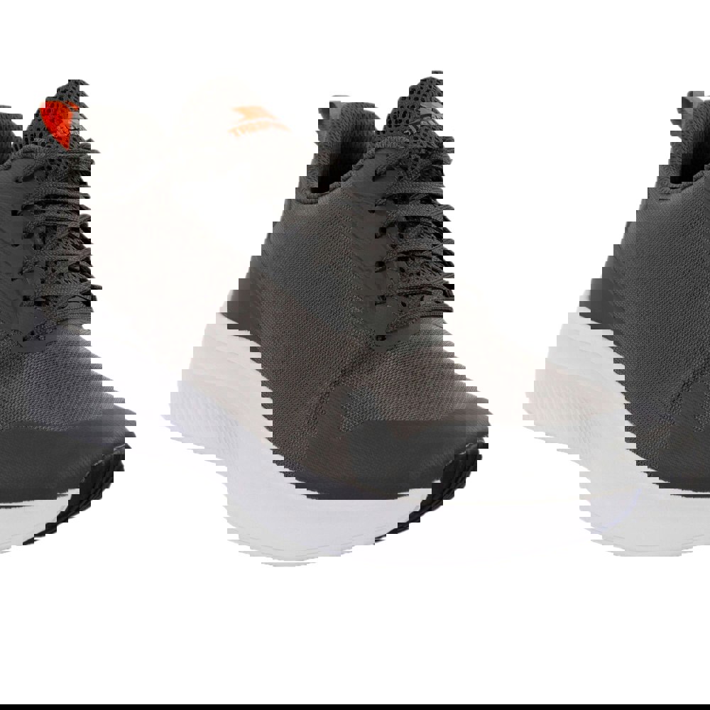 Trespass Sirus trainers bring a low-cut profile with a flat heel and lace-up fastening. The design includes logo detailing and a practical pull tab for easier handling. A cushioned lining is included, alongside a padded collar and padded tongue for added structure around the ankle and instep.