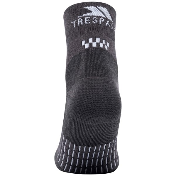 These unisex adult sports socks come in a practical pack of two, finished in charcoal and white. The ankle cut keeps the profile neat, while the mesh and terrycloth construction adds texture and structure. A contoured, ribbed cuff helps maintain the shape at the top of the sock.