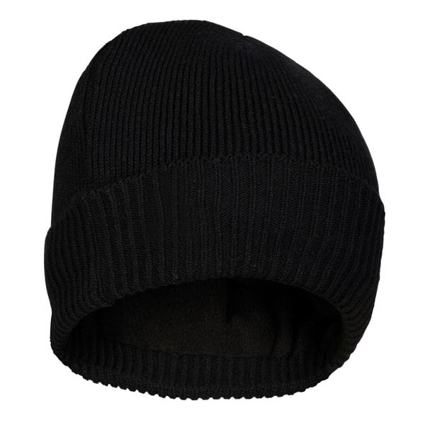 Finished in black with a logo design and a leatherette badge, this beanie is lined with fleece for added comfort. It also features a PU membrane and fabric technology described as durable, hydrophilic and moisture wicking, with a water-repellent finish and a waterproof membrane.