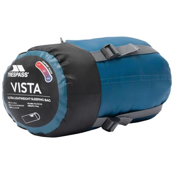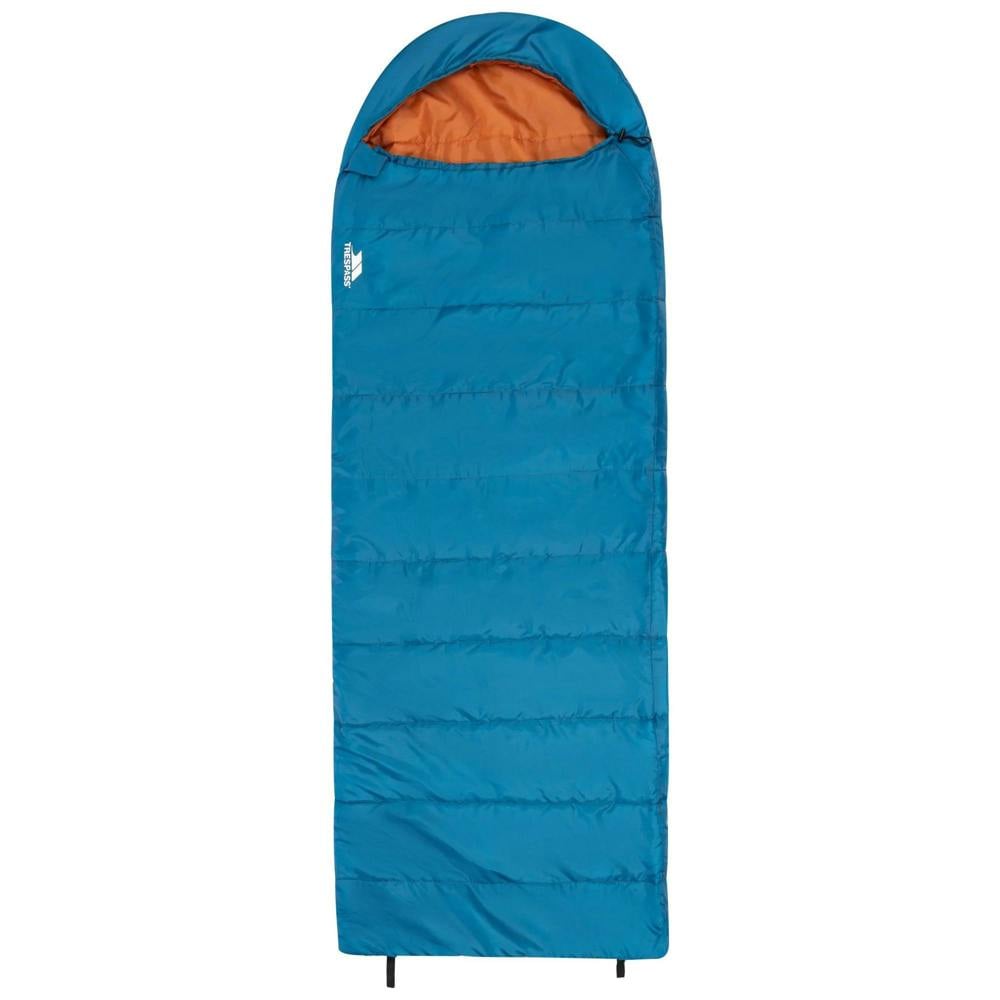 The Trespass Vista Sleeping Bag is a unisex adult design created for comfortable nights on the move. Finished in rich teal, it features a rectangular, quilted look with logo detailing for a clean, practical style. An adjustable hood lets you tailor the fit for added comfort when temperatures drop.
