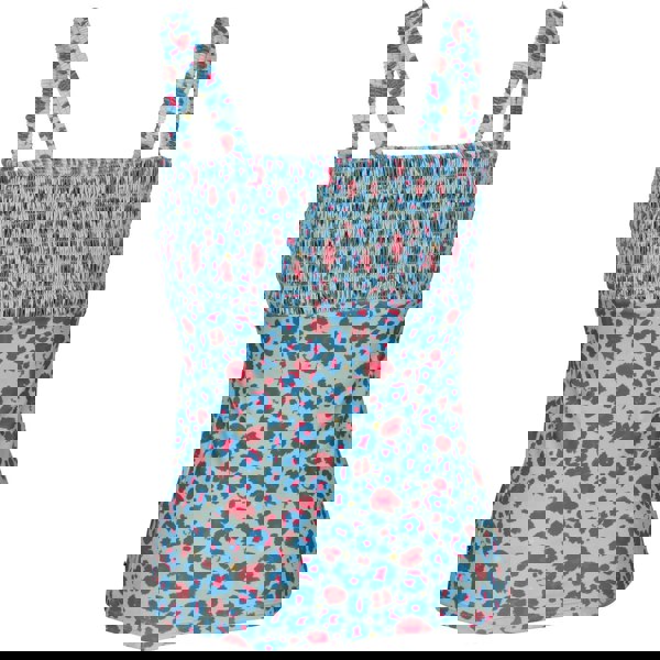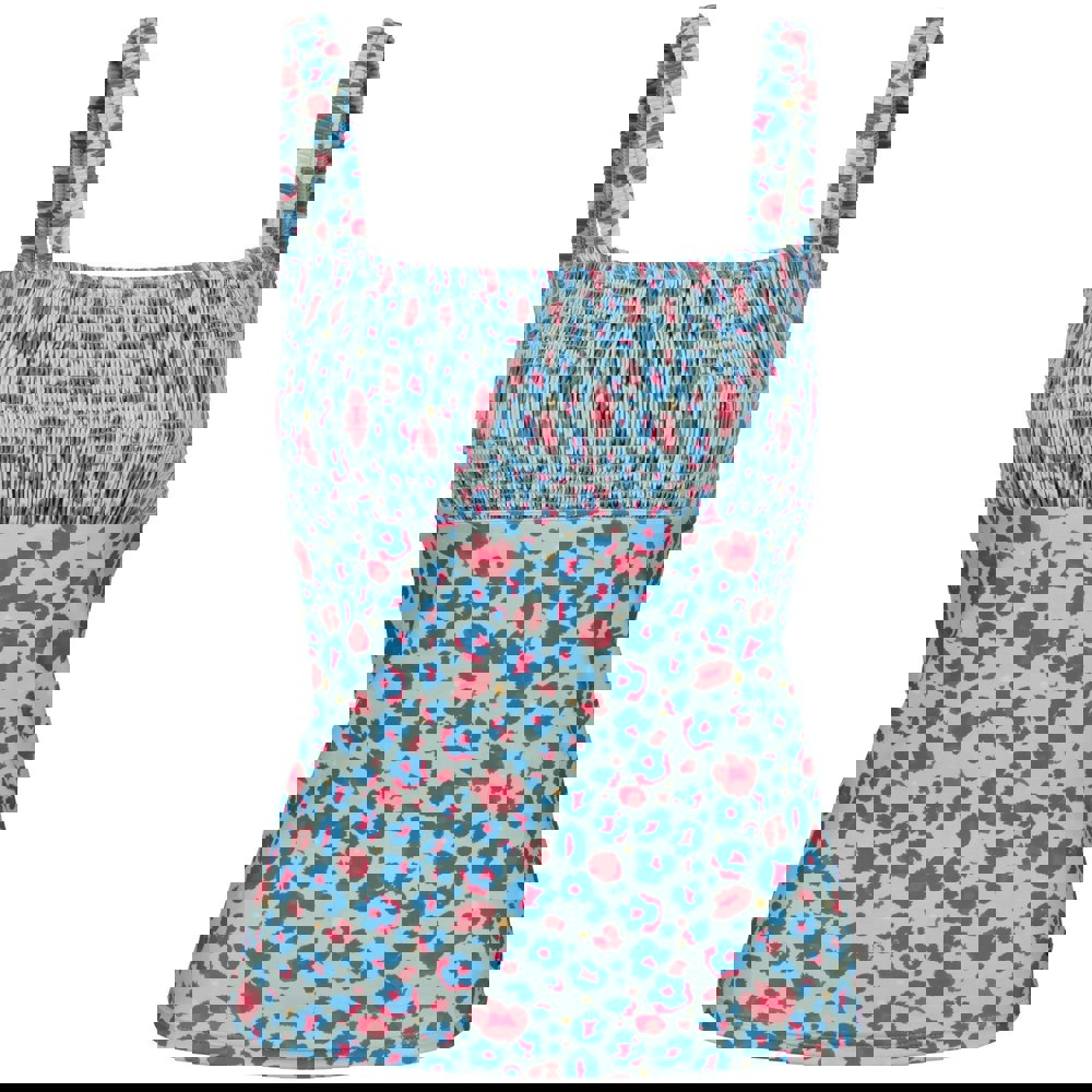 This tankini top is made from 85% polyester and 15% elastane, finished in a light sage all-over leopard print. A pull-over design keeps the look clean and simple, while the square neckline is matched by a square back for a balanced shape.