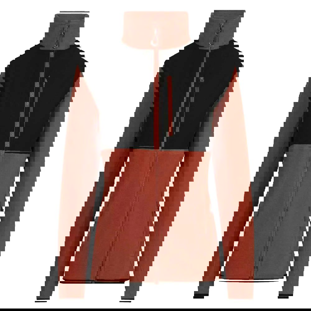 It fastens with a full zip and includes an inner storm flap. Long sleeves are finished with stretch binding at the cuffs, with matching stretch binding at the hem. Storage is provided by two side pockets and a zipped chest pocket, alongside a sleeve patch detail.