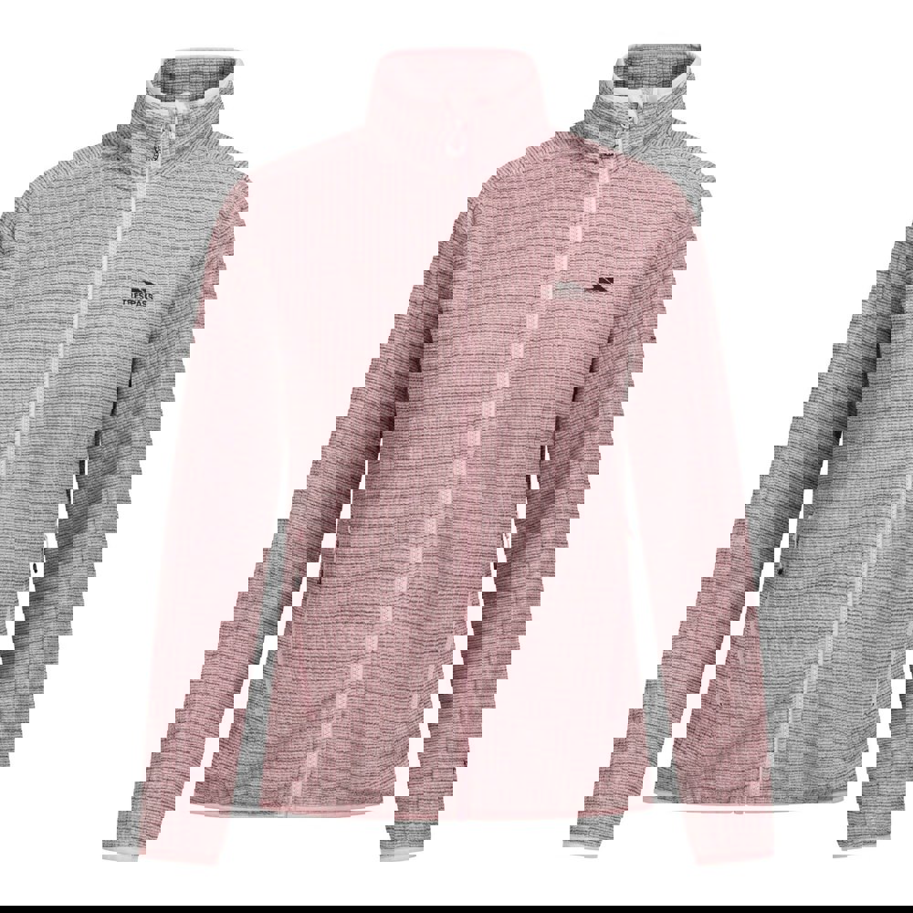 The Trespass Women’s Celia fleece jacket in Carnation is made from 100% polyester with a brushed back, knitted, textured finish. It has a standing collar and long sleeves, finished with binded cuffs and a binded hem for a neat outline. A full zip fastening with a zip puller keeps the front clean and easy to adjust, while the logo detail adds a simple branded touch.