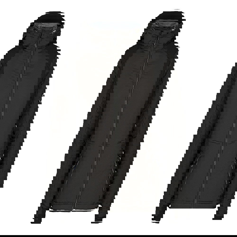 This padded jacket is made with an elastane and polyamide shell, with 100% polyamide filling and lining. A fleece lining adds an extra layer inside, while the plain black finish keeps the look clean and understated.