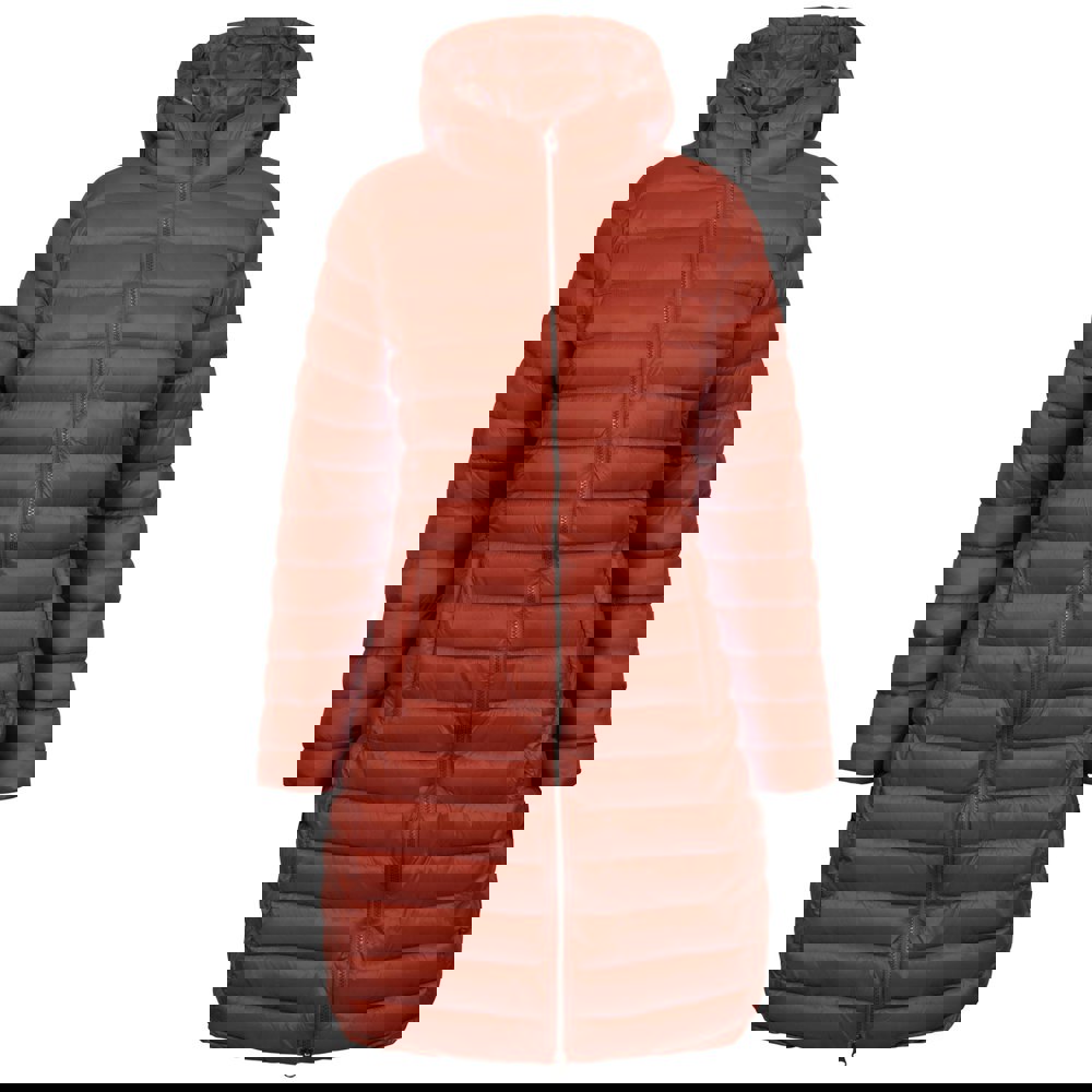 This padded jacket is made with a polyamide shell and a 100% polyamide lining, finished with 100% polyester filling for a quilted look. It has a long length and long sleeves, with a hooded neckline for added coverage.