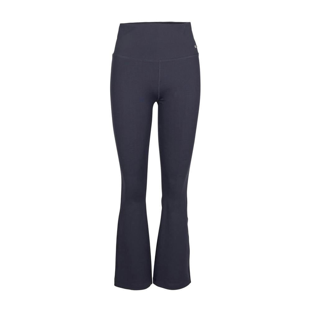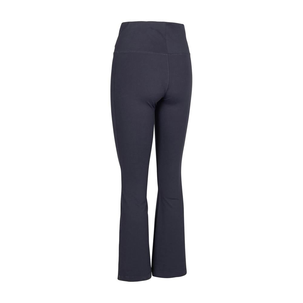 Trespass Ellen flared leggings in black with a plain finish. Made from a nylon and elastane blend, they pull on for a clean, streamlined look. The flared fit creates a wider leg shape, while riveted detailing adds a defined accent.