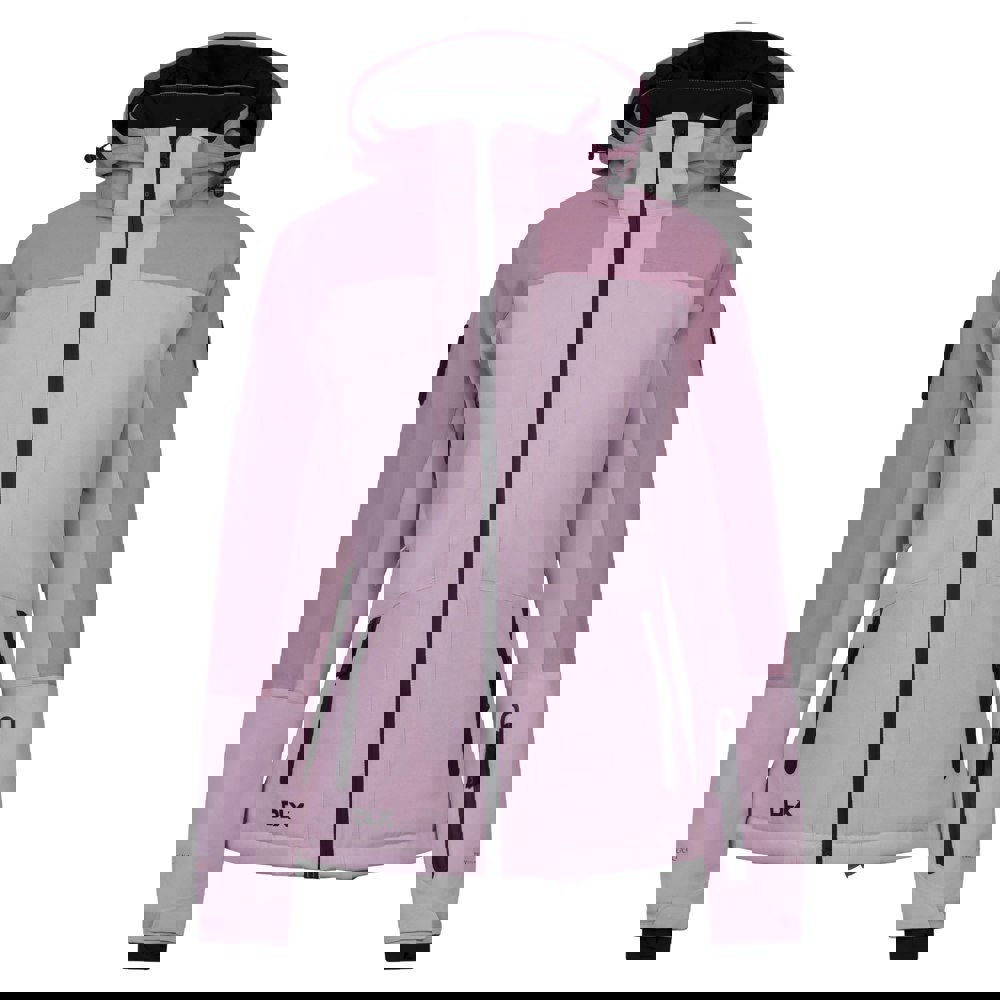 The Trespass Women’s Erika DLX ski jacket is made from 5 layer stretch fabric and finished with logo and text detailing. A hooded neckline and long sleeves create a practical outer layer for ski wear, with taped seams and underarm vents included.