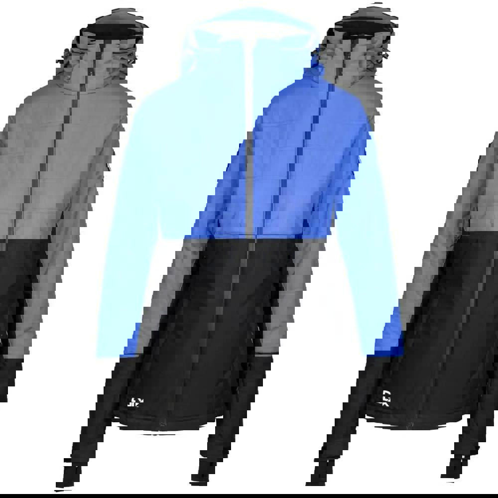 This women’s Jaclyn DLX ski jacket is made with a 100% polyester outer and a PU membrane fabric. It has a hooded neckline with an adjustable hood that zips off, plus long sleeves finished with adjustable cuffs and an inner stretch cuff. Colour block styling and sleeve patches add definition, while quilted panels and a detachable snowskirt complete the construction.