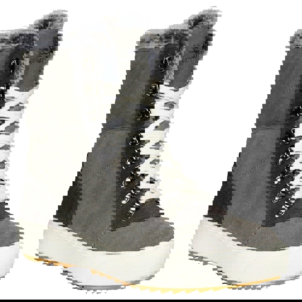 These Trespass Korinna snow boots are made with a suede upper and a plush textile lining. Cut to the ankle with a flat profile, they pair a round toe with a faux fur collar for a distinctive finish. A waterproof membrane is included as part of the fabric technology.
