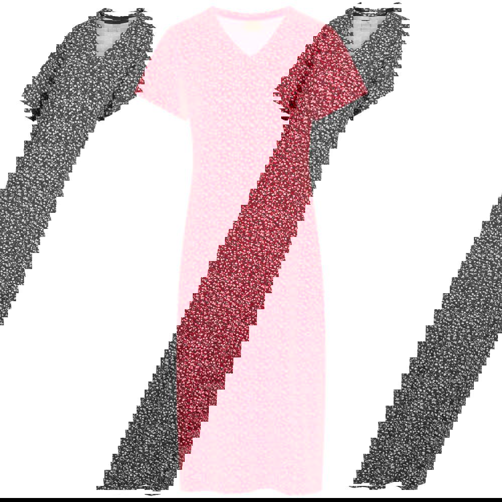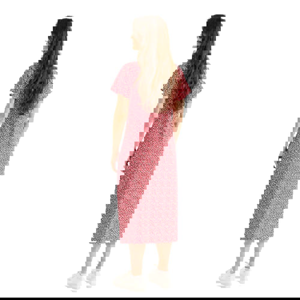This midi dress is made from a knitted cotton blend with added elastane. It comes in claret with a floral design, finished with a V neck and short sleeves for a clean, simple silhouette.