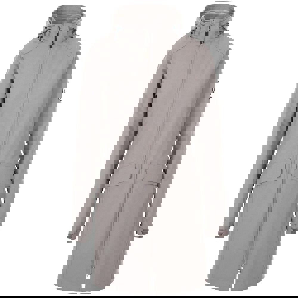 This long-length softshell jacket is made with a woven outer of 85% polyamide, 10% elastane and 5% polyester, with a TPU membrane shell and a 100% polyester lining. Finished in pale grey marl, it has a plain design with a badge detail and sleeve print.
