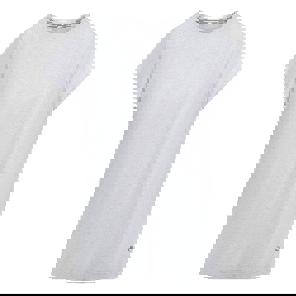 This women’s Marsaili T-shirt is made from a woven stretch material with 88% polyester and 12% elastane. It has a plain grey marl finish with logo detailing, and a crew neckline with taped construction. Short sleeves and side slits complete the silhouette, with a loose fit for an easy, relaxed shape.