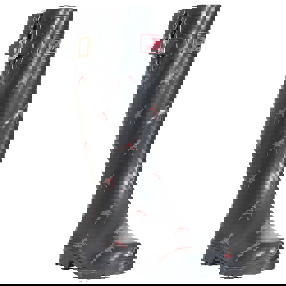 These women’s Samira Wellington boots bring a bright, bold look to wet-weather dressing with a striped design and dog print. Made with a 100% rubber upper, they offer a classic wellington shape suited to everyday outdoor wear. A textile lining adds an extra layer of comfort inside the boot.