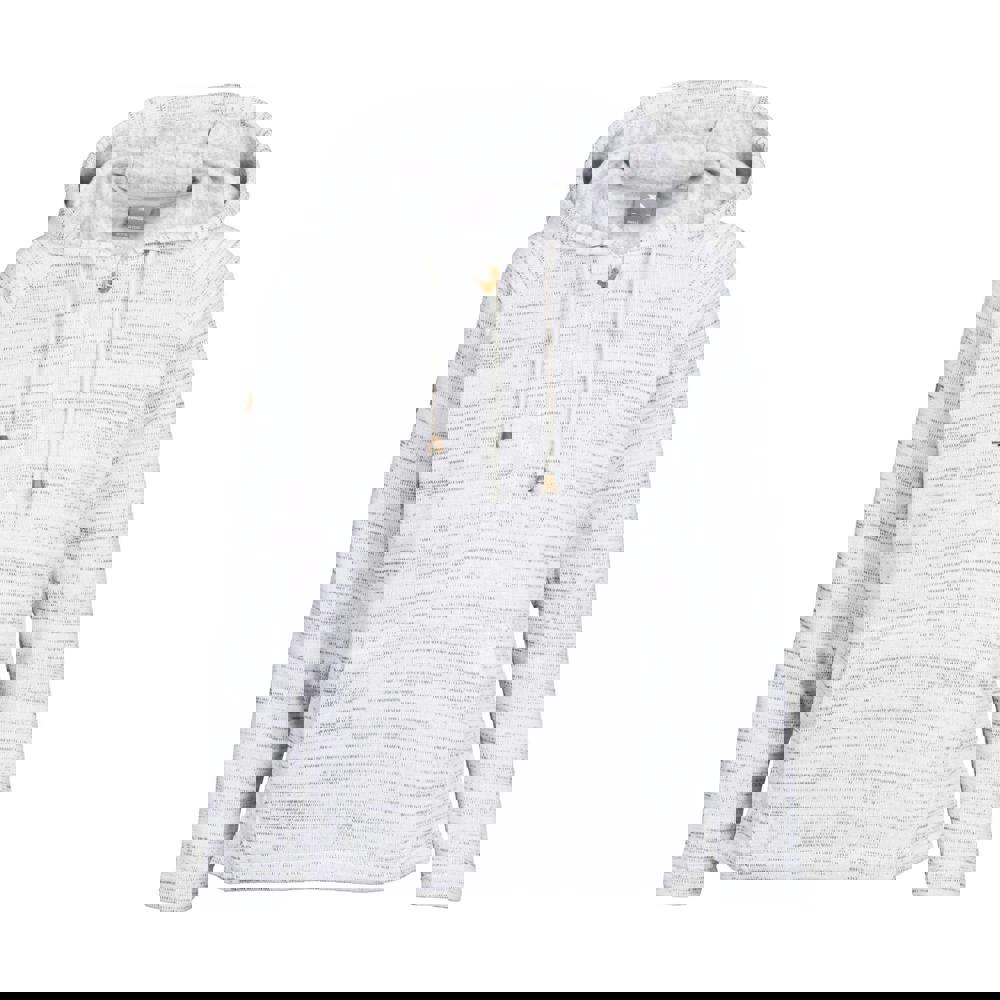 The hooded neckline is paired with a grown-on hood and drawcord for adjustment. A half zip sits at the front, while the pull-over style keeps the look clean and practical. Long sleeves, a kangaroo pocket and side vents at the hem complete the design.