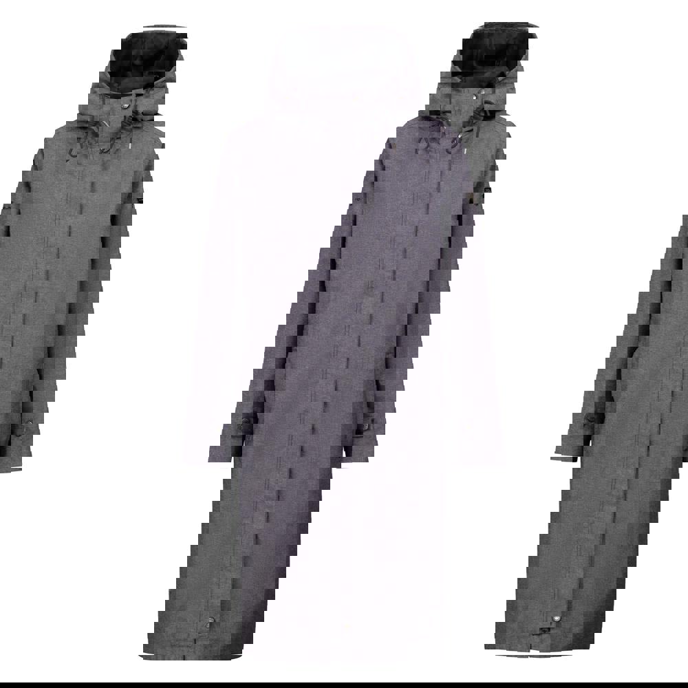 This women’s Shiralee waterproof jacket comes in navy with a plain design and marl fabric. It is made from 60% polyester and 40% cotton, with a TPU membrane and a taffeta lining. The jacket has a hooded neckline with a grown-on hood and toggle adjuster, plus long sleeves and taped seams.