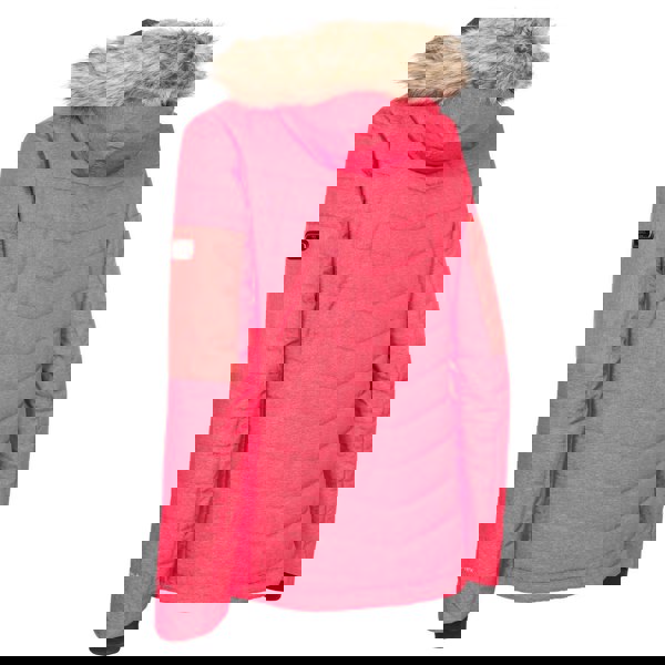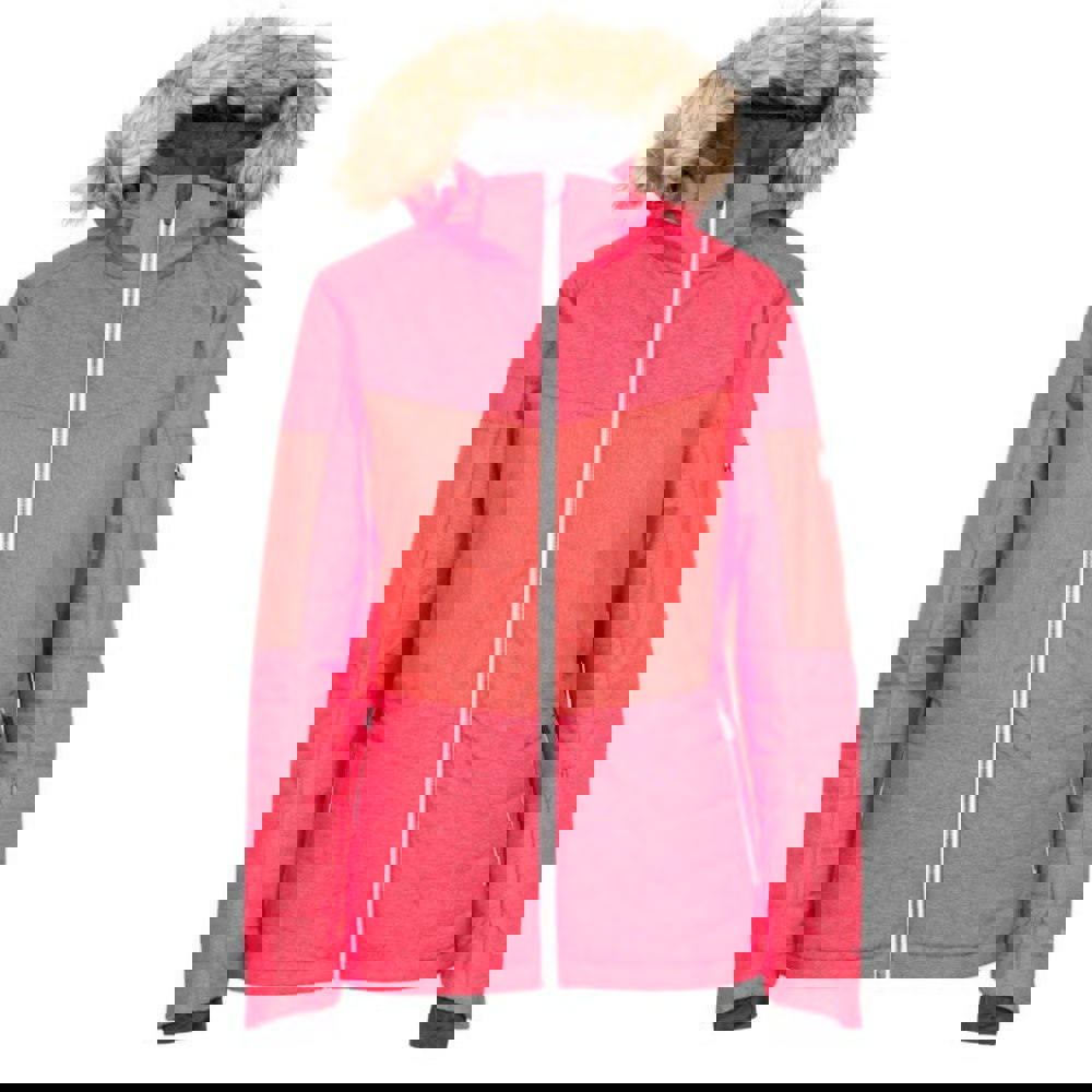 Built for time on the slopes, this women’s Tiffany ski jacket comes in a hibiscus red colour block design with a padded construction. The outer is made from 75% nylon and 25% polyester, with a TPU woven fabric, a 100% polyester lining and 100% polyester filling. A hooded neckline and long sleeves keep the profile practical, while taped seams, a storm flap and a detachable snowskirt add functional detail.