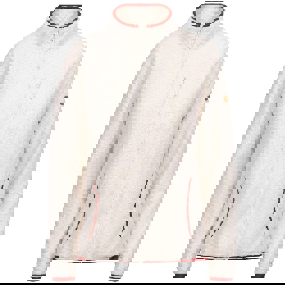 Made from 100% polyester, this full zip fleece jacket is knitted and finished with a standing collar and long sleeves. The design includes a logo and sleeve patches, with a sleeve patch and zip puller detail.
