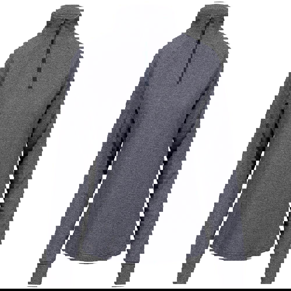 This women’s Willstone active top comes in a navy marl finish with a plain design. Made from an 80% polyester and 20% cotton blend, it has long sleeves with fitted cuffs and a standing collar for a clean, structured look.