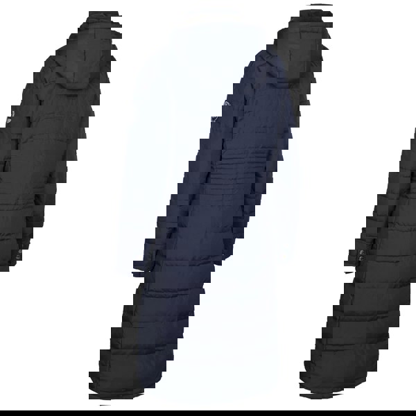 This long, hooded down jacket comes in navy with a woven outer and a furry fleece lining. The outer and lining are made from 100% polyester, with a 50% down and 50% feather filling. A logo design and badge detail complete the look, while long sleeves with stud cuffs keep the finish neat.
