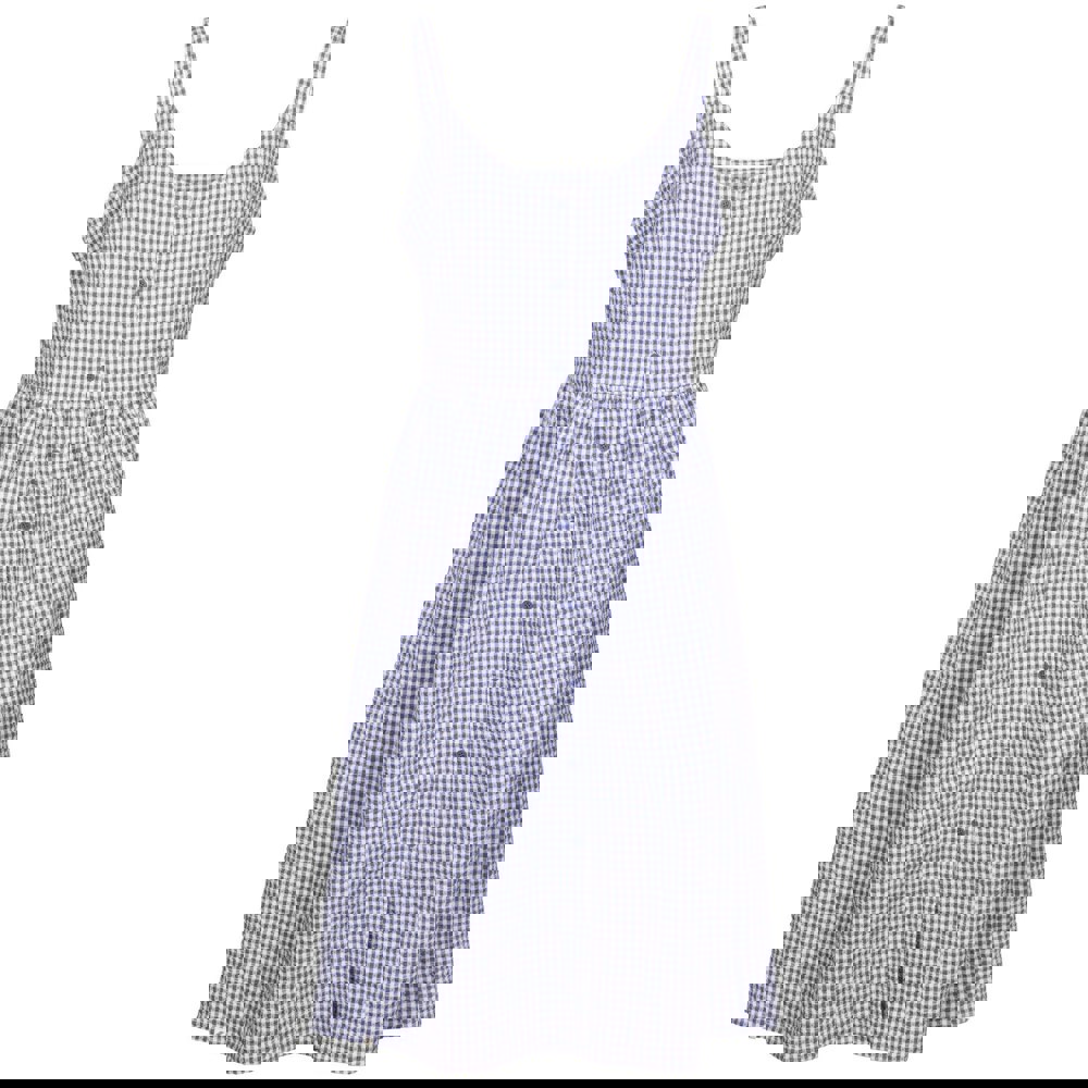 This sleeveless casual dress comes in a gingham seersucker with a checked design. Cut to a midi length, it has a round neckline and adjustable shoulder straps for a personalised feel. A button-down fastening completes the front, keeping the look clean and easy to wear.
